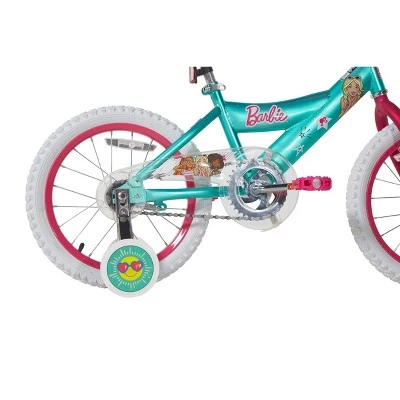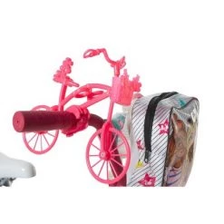 Our custom Barbie 16” bike is dressed to impress. The sturdy steel frame comes complete with removable, adjustable training wheels, a rear coaster brake and a full chain guard. But, to be a Barbie bike, you need pizazz, so we added custom Barbie decals, pink pedals, a Barbie saddle, a Barbie handlebar bag, streamers and bold white tires. But what’s a ride without Barbie? So, we added a ‘Ride With Me Barbie’ minibike, and with your little one on these wheels, Barbie is sure to want to ride along!