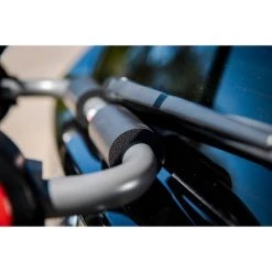 - Holds up to 2 bikes using rubber cradles and hook-and-loop straps for secure attachment