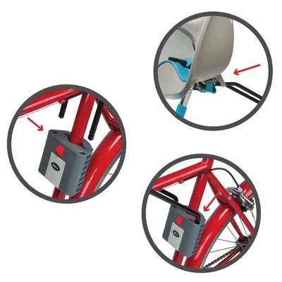 The Bell Mini Shell front child carrier fits most standard sizes and models of bikes, and offers easy, fast and secure installation (and quick-release removal, too!). The Mini Shell is ventilated for comfort, and features a foam seat pad, 3-point harness system and adjustable foot beds that grow with your child. The Mini Shell carries one child, age 1 and up, and has a 33-pound maximum capacity. Download the BILT app for 3D interactive instructions.