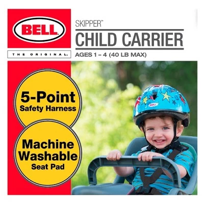 Bring your mini-me along for all your bike adventures with the Skipper Child Bike Seat from Bell Sports. This seat is for ages one and up, attaching right behind your bike seat to keep your little one close as you set out on your journey. A five-point safety harness keeps your tot secure and a machine-washable seat pad makes it easy to keep the seat clean, even through snack or drink spills.
