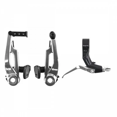 BRAKE CLPR BOX THREE V 108mm w/LEVER SL Cold forged, CNC machined 6061 T-6 Aluminum V-brakes. 30mm of vertical brake pad alignment for ease of use and compatibility. Reversible Lever for use on left or right side with easier cable access/adjustment. 64 inchs of Stainless steel mesh-wrapped linear wire in a custom cable housing. Kit includes everything for 1 brake with the lever on either side of the bars.