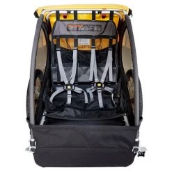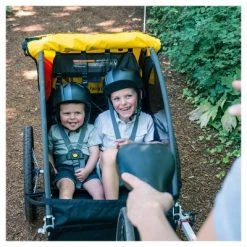 Snap your two little ones into this Burley® Bee Bike Trailer to go on adventures all around the neighborhood. The bike trailer features stability to keep it upright even if your bike takes a tumble. Your toddlers and young children will be secured with a five-point harness system with adjustable straps for a perfect fit.