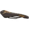 The low profile Mood DT (Durable Top) is for riders who see a lot of wet weather or for DH and Freeride applications where extra durability is needed. Narrow platform design has chromoly rails for extra strength while still being very light weight. Features a firm sitting platform with a gentle scoop at the rear, and a roll-away nose for climbing control. Narrow overall shape offers clearance for long distance seated pedalling. Smooth perimeter is easy to move around and has a round edge to set a knee against for stability. Seamless Synthetic cover.