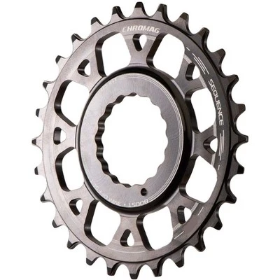The Chromag Sequence direct mount chainring features the official X-SYNC technology licensed from SRAM for unmatched chain retention. So now, no matter what kind of mountain bike you have, you can have the peace of mind that your chain will stay put, and you can give your bike a little extra flair with the timeless Chromag styling. 3mm offset. For RaceFace cranks with Cinch system. Compatible with RaceFace NEXT, SL, SixC, Turbine, fatbike cranks. Official SRAM X-SYNC technology is compliant with SRAM warranty standards for compatibility with all SRAM X-SYNC drivetrain. Chamfered mud-clearing recesses at the base of the teeth provide the best possible performance in muddy conditions. CNC Machined in Whistler, BC from 7075-T6 aluminum for durability. Anodized Black with laser etch.