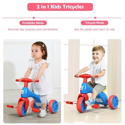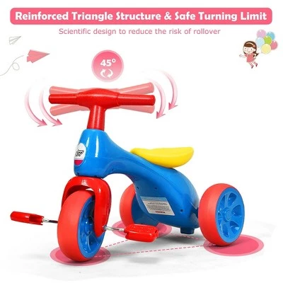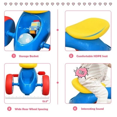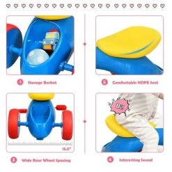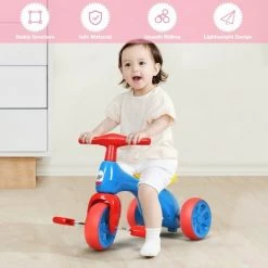 Product Description:Kids will love this cute tricycle with durable tires, which is helpful to take them to every where they want to go. This tricycle bike features the secret little storage box under the comfort-ride seat for carrying little toys and snacks during the ride! And the stable wheel base, easy-grip handlebars and cute foot pedals help kids get rolling, even the littlest riders! Our balance tricycle is designed for exercising on flat paved surfaces and gently sloping terrain. The toddler tricycle is the first bike for toddler to develop balance and learn to walk. It’s the best gift for toddlers! It brings fun and joy to kids and brings the wonderful childhood to them! Specification: Color: Blue + Red + Yellow. Material: TRE + HDPE + PP. Dimensions: 22.5″x13.5″X16.5″(LxWxH). Weight: 4.4 lbs. Maximum Load Capacity: 44 lbs. Recommend Age: 18-36 months. Package included:. 1X baby balance bike.