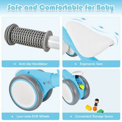 - Sturdy & Comfortable Infant Walker: Made of solid carbon steel, this baby bike can fully support your baby’s weight up to 55 lbs. Baby can sit stably on the ergonomic PU seat with sponge padded. Plus, the EVA silent wheels will bring smooth riding ex perience indoors and outdoors.