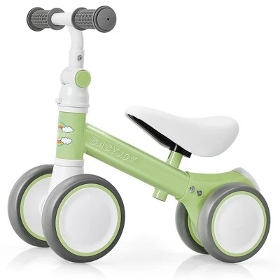 Do you worry about choosing what your baby’s first birthday gift is? This balance bike is the ideal choice!. Crafted from carbon steel, non-slip rubber handle, wear-resistant EVA wheels with delicate workmanship, this baby bike offers strong support and comfortable riding ex perience for your baby. The limited 135 degrees turning and fully widened enclosed wheels will avoid side falling or feet damage. Besides, it has passed the ASTM and CPSIA test for safe use. The adjustable seat and handlebar can satisfy baby of different heights. Toddler can ride this infant walker in the living room, parks and other places. As a no-pedal bike, it not only ex ercises baby’s leg strength but also enhances the balance, coordination and confidence. This balance bike is an ideal gift for nephews, grandsons or just for your own little baby boy and baby girl. . Specification: Color: Green. Material: Carbon Steel, EVA +Sponge. Overall Dimension: 19” x 11” x 17” (L x W x H) . Adjustable Seat Height: 10”-12” . Net Weight: 4 lbs. Weight Capacity: 55 lbs . Recommended Age: 6-24 Months. Package Includes: . 1 x Baby Balance Bike. 1 x Instruction.