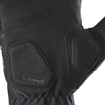 A product’s ability to protect from the cold. It depends on the material’s thermal resistance and how much air can pass through it. The higher its thermal resistance, the more the product retains the heat produced by the body while cycling.Each individual’s sensation of cold and ability to withstand it is different; other factors that can influence this are the ambient humidity level, the degree of physical exertion, wind speed, etc. . Waterproofing is a fabric’s ability to prevent water from passing through. A fabric’s water-repellency is its ability to make water bead and/or run along its surface. The garment soaks up little or no moisture, dries more quickly, and doesn’t become heavier. Water-repellency can also make it more difficult for its outer surface to become dirty.Water-repellency is obtained by applying a treatment to the fabric’s external surface.This glove is not waterproof!