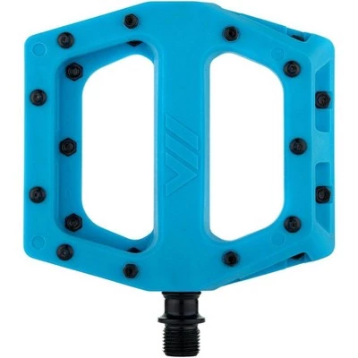 The V11 pedal is for those that favor durability, compliance and affordability of composite pedals. Molded with the same proven shape as the multi award-winning Vault pedal, providing a huge platform with DMR’s unique concave shape that allows your foot to sit deep into the center for supreme grip. Durable glass reinforced nylon body features eleven replaceable steel pins each side for rock solid grip. Pins are secured with captive locknuts for ultimate durability. Fully rebuildable with the same proven internals as DMR Vault pedals. Large platform area 105mm x 105mm, and 19mm thick. Low profile body with concave foot bed.