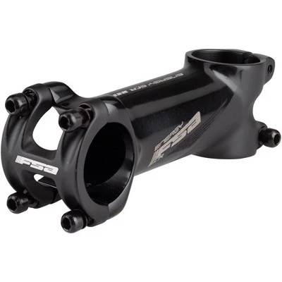 The FSA Energy SCR Stem represents cutting edge aluminum construction. The shape is 3D forged from 2014 aluminum for great strength, with the final refinements carried out by CNC machining. Titanium bolts complete the package. Semi Integrated Cable routing (SCR). 3D Forged and CNC machined from AL2014. 4 bolt sculpted SL faceplate. Finish: Bead blasted black with polished black anodized.
