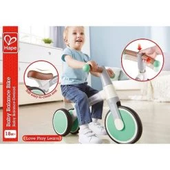 Introduce your toddler to a stylish beginner bicycle. Ready to take on many adventurous strolls, this Hape New Explorer Balance Bike is perfect for guiding first-time riders. Featuring a comfortable cushioned seat, horizontally adjust this tricycle to fit your child’s arm length. With a lightweight frame and only 4 parts, easily assemble this trike without any tools. Great for indoor or outdoor play, take this bike wherever your toddler wishes to explore. This free-riding trike helps develop key strengths like coordination, balance, and confidence in mobility for when your child is fully ready for their first pedal bike. Crafted with a durable magnesium alloy base, this trusted toy can last for a number of years as your child matures. This tricycle encourages group play, strengthening your child’s social and communication skills. This anti-slip Vespa green trike is the perfect gift for adventurous toddlers ages 18 months and up. See your child learn, grow, and enjoy fun playtime with the Balance Tricycle from Hape.