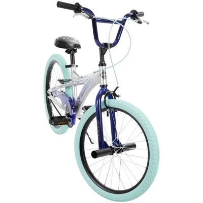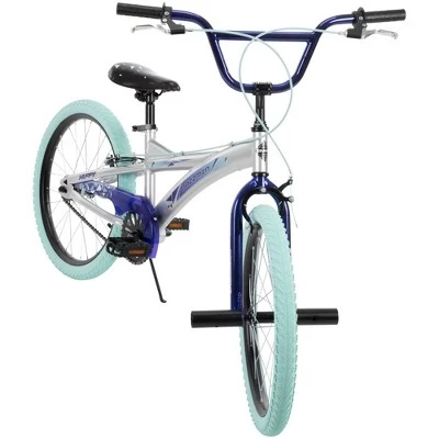 Let’s ride! The Huffy 20-inch Jazzmin BMX-style bike will catch everyone’s eyes. Bold colors featuring the Huffy exclusive Metaloid Violet on the fork compliment the bike’s cool spec. The durable steel Silver frame bike combines with front and rear handbrakes for convenient, solid control. Front pegs give the Jazzmin a pro-style look, and the BMX-style bike includes an alloy quick release to adjust the seat height for the right fit. Jazzmin, a fun ride with a hot look!