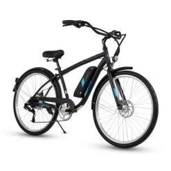 The electric comfort bike features Huffy’s Perfect Fit frame design to increase balance and control while riding in the upright position to help your back, arms, and hands. The convenient step-over design makes it easy to hop on and off the e-bike. The padded spring saddle and dual-density grips and pedals improve your overall comfort for a great ride.