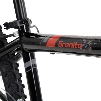 This 24-inch Granite Mountain Bike takes you on your path to fun. The sturdy steel frame mountain bike features 15-speed index shifting so you can ride through the neighborhood, on gravel, in dirt and over hilly terrain! The comfortable saddle features an alloy quick release which makes it easy to adjust to the right height. Sleek styling with the latest colors on a durable frame, the Huffy 24” mountain bike delivers one great adventure!