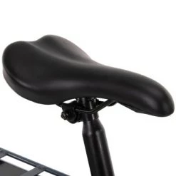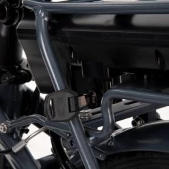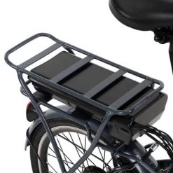 This bike, with pedal assist, gets up to 20 mph as you ride thanks to the 250-watt rear hub motor and 36-volt lithium battery housed under the rear rack. To charge the battery, you can either charge it while it’s locked in place on the bike, or you can remove it for more convenient charging.