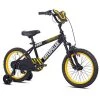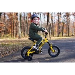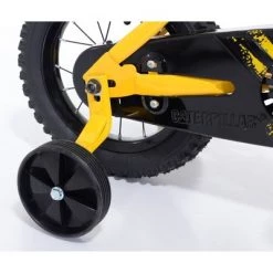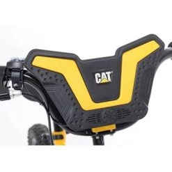 Nothing says tough and strong like a Caterpillar bicycle! This rugged bike is ready for a ride to school or around the neighborhood. The custom molded handlebar plate includes 4 Caterpillar truck sounds. It has a real suspension front fork, sturdy steel frame, rear coaster brake and a front hand brake. The training wheels are adjustable & removable.