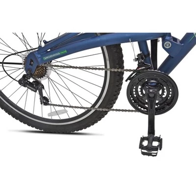 Kent Bicycles presents the NORTHSTAR dual-suspension mountain bike, an affordable way to experience the great outdoors. Sturdy steel URT dual suspension frame with a front suspension fork is the heart of the package. Motivation comes in the form of a 21-speed drivetrain featuring a Shimano rear derailleur. Stopping control is accomplished with front disk brake and rear linear pull handbrakes. Fat knobby tires provide grippy traction and high-profile wheels with machined braking surfaces keep the ride straight and true. When the journey gets long, you’ll be happy for the Vitesse padded saddle and easily adjusted seat height with no tools required via the quick release seatpost clamp. Around the neighborhood or on the trail, the NORTHSTAR DS has got a handle on it providing you with a good workout and a smile.