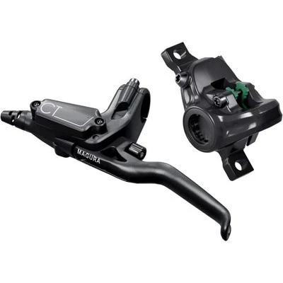The Magura CT4 hydraulic 2-Piston disc brake provides braking power with ease of use and low maintenance for city and trekking use. Transmission ratio and ergonomic features are matched to the requirements of urban and all-road biking. 3-Finger Carbotecture brake lever and blade with tool-less reach adjustment. Axial master cylinder features an enlarged expansion reservoir that reduces the risk of air being trapped in the system and ensures reliable long-term operation. 2-Piston caliper features Quiet SPORT brake pads with short bed-in period. Optimized for eBike use. EBT “Easy Bleed Technology” feature.