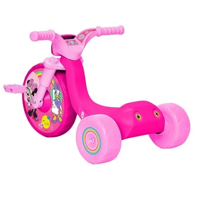 It’s time to cruise around with Minnie Mouse on the Disney Minnie Mouse Junior Cruiser 10 in Fly Wheels™ Trike. Featuring an extra-wide front wheel, it’s designed for stability and maximum control for toddlers aged 18-36 months. The Junior Cruiser also includes mega grip tread on the wheels too for awesome street gripping action, and push buttons on the handlebar that will activate cool sound effects! With a low center of gravity, it’s perfect for little ones learning to pedal and ride. Always remember to wear a helmet. Happy Riding!