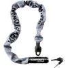- Hardened ultra steel shackle with reinforced sleeve over crossbar and cylinder for added security