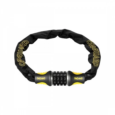 LOCK OG CHAIN 8123 COMBO 4fx6mm BK Steel Ball Combo lock is permanently forged to a titanium reinforced hardened steel square link chain. Protective casing protects your chain from the elements and your bike from the chain. High visibility easy to read digits.