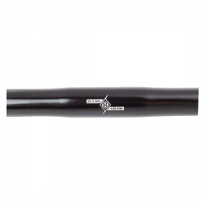 HBAR OR8 RD ALY BULLHORN 26.0x420BK AL6061-T6 tubular alloy construction. 19.2mm ID accepts bar-end shifters/brake levers. Laser etched graphics. 320g weight. ISO-Road safety certified.