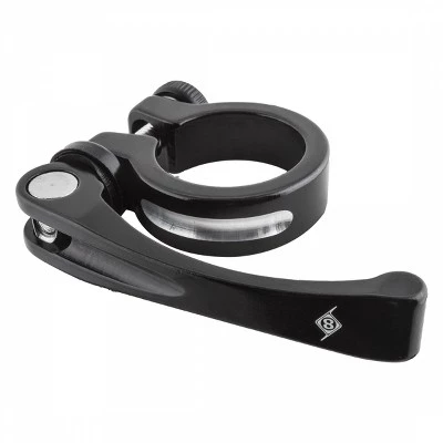 SEATPOST CLAMP OR8 P-FORCE QR 31.8 BK Seat clamp with extra leverage design. Black anodized and machined. Seat clamp with extra long quick release lever for added clamping force.
