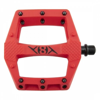 PEDALS OR8 STRAPD 9/16 RD Foot retention strap compatible design for single speed/fixed gear, as well as MTB or BMX riding. Pedal body made of ruggedly durable engineering grade thermoplastic. Sealed bearing and LSL sleeve bushing. 9/16` CNC chromoly spindle. 113mm x 114mm x 20mm concave platform. 8 fixed pins and 12 M3-9mm replaceable pins. 360g per pair.
