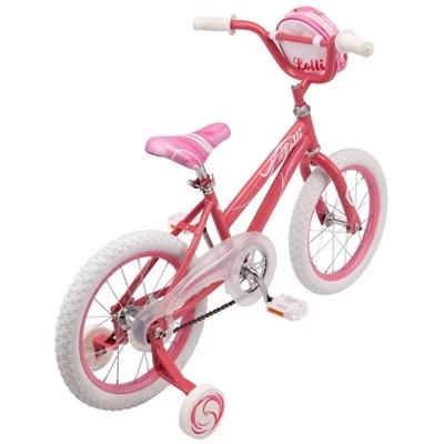 Teach your child to ride in style with the Pacific Lolli kids bike. The Lolli features a durable frame, single speed drivetrain, and rear coaster brake for a great riding experience. Plus, the handlebar bag adds storage and fun style, while removable training wheels provide extra stability while your child learns to ride. Cycling is tons of fun for young riders with the Pacific Lolli.