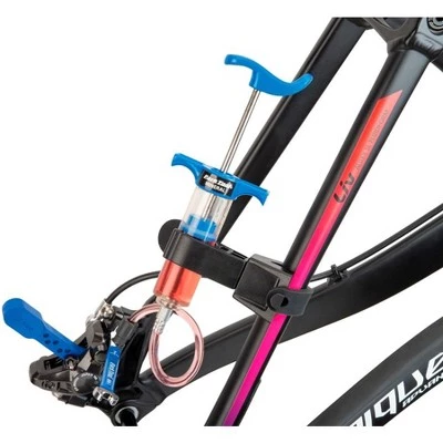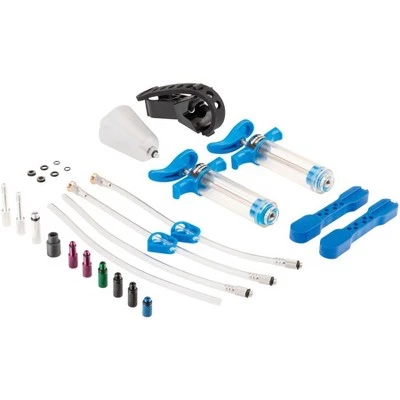 The BKM-1 Hydraulic Brake Bleed Kit will bleed most models of mineral oil based hydraulic brakes. Hydraulic systems need bleeding to remove any air bubbles and to inject new, clean fluid. Designed and built for home use and for the rigors of daily commercial use. Includes two syringes, hoses with shutoff clips, multi-size bleed blocks, bleed funnel and a unique attachable syringe mount. Housed in a rugged reusable case. Machined 7075 aluminum fittings to service Shimano, Magura, Clarks, Promax, Tektro, TRP and other brands of mineral oil based hydraulic brake systems. Replacement parts available. Brake fluid not included.