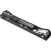 The MTB-5 packs 16 functions into one slim, tough folding multi-tool, making it the ideal companion for any trailside adjustment or emergency fix. Features a full set of hex wrenches and screwdrivers, a T25 Torx-compatible driver, and five specialty tools to aid in common on-the-ride repairs. 2, 2.5, 3, 4, 5, 6 & 8 mm hex wrenches. T25 Torx-compatible driver. Philips #2 cross tip & flat head screwdrivers. Chain tool (5 to 12 speed compatible, not compatible with Campagnolo 11–13 speed chains). Spoke wrenches (equivalent to SW-0 and SW-2). Presta valve core removal tool. Disc brake rotor truing tool. Disc brake pad spreader.