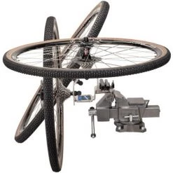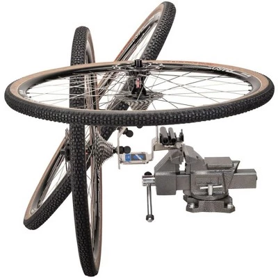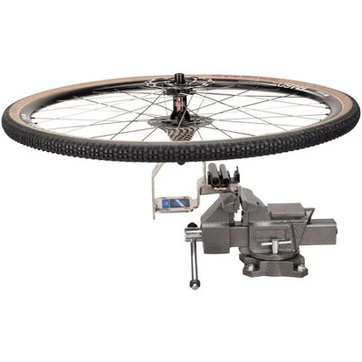 No more need to hold wheels between your knees, balance on a bench top or ask for help. The WH-1 Wheel Holder firmly holds thru axle and quick release wheels at three convenient positions. It’s like having a strong helper to hold wheels during cleaning, tire and tube work, hub work, cassette work, and tubeless installation. The WH-1 can be bolted or clamped directly to a bench or installed in a bench vise.