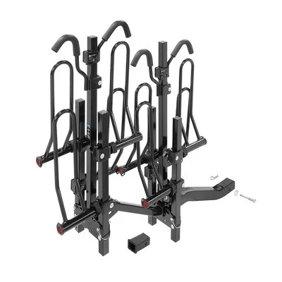 Whether you are taking a camping trip or just a daily bike ride on the trails you will need a convenient way to store and haul your bikes. Use the Pro Series Trailer Hitch Mount Folding Modular 4 Bike Carrier Rack to safely get your bikes where you need them.This sturdy trailer hitch-mounted bike carrier will securely hold your bikes in place for your next adventure. No need to struggle to haul your bikes, the center post tilts for easy loading and unloading of all the family’s bikes and also folds for compact storage. The unique modular design allows you to haul 2 bikes or 4 bikes depending on your needs. A dual rise shank provides road clearance ensuring a safe and effortless trip while rear reflectors also provide additional safety and visibility during nighttime road trips. The versatile design allows you to use this bike carrier with 2-inch or 1-1/4-inch hitch receivers.Provide yourself convenience, safety, and versatility on your next adventure, and take your bikes along for the ride with the Reese Towpower Trailer Hitch Mount Folding Modular 4 Bike Carrier Rack.