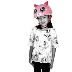A bicycle helmet has never looked as cute as the Raskullz Astro Cat toddler helmet. This adorable bike helmet has a 3D kitten nose and perky little ears for a look your toddler is sure to love. The bright pink helmet has printed astrological graphics and sparkling glitter print to give it a magical look! The toddler size helmet is recommended for riders 3–5 years old, but will fit anyone with a head measuring 48–52 cm.