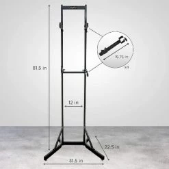 - Measures at a height of 81.5” width of 12”, leg width of 31.5” depth of 22.5” and four hooks with a length of 15.75”