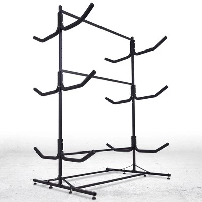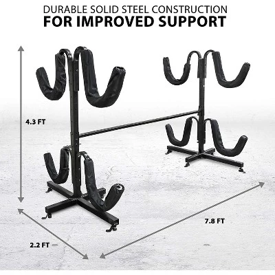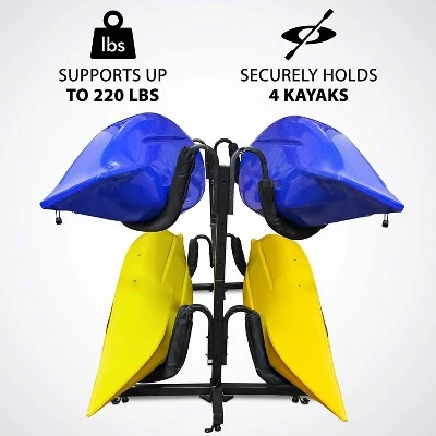 - Supports up to 220 lbs and securely holds 4 kayaks.; Supports up to 500 lbs and securely holds 6 kayaks.