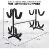 Make a splash in your leisure time schedule with this Deluxe Freestanding Two-Kayak Storage Rack! Not just for kayak aficionados, this durable and versatile storage rack looks and works great wherever you display it. The freestanding design makes it easy and reliable to hold your equipment in a garage, storage room, boathouse, or deck.Each kayak rack features solid steel construction to give you all the support your great needs. The dual tripod base ensures the rack stays planted firmly on the ground, and on any terrain. Powder-coated for extra durability, the tubular components are lightweight, and the scratch-resistant arms are cushioned to protect your paddleboat from residual to the paint or surface. Plus, the arms have straps on the back that hold your oars in place.Consult the easy-to-understand User Guide to assemble your new Two-Kayak Storage Rack, using the included hardware. Adjust the arms to the height you need, place it in the ideal spot for loading or unloading, and you’ll be good to go when ready for that next kayak adventure!