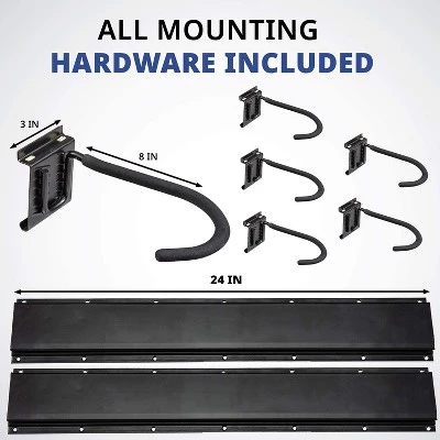 - All mounting hardware included; hooks measure 3” x 8” and 24” racks