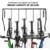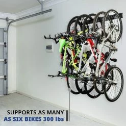 Start stacking with this incredible space saver! The RaxGo wall mounted bike storage rack holds up to 6 bikes and has a 300-pound weight capacity. The durable solid steel design includes heavy-duty, shock resistant hangers. The anti-scratch hooks are fully adjustable with rubber cradles to prevent against chipped paint and scratches, great for difficult to mount bike frames. All necessary hardware is included along with clear instructions to make installation fast and easy!