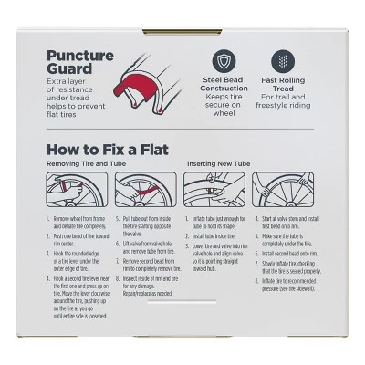 - Puncture guard provides extra layer of resistance under tread to help prevent flats.