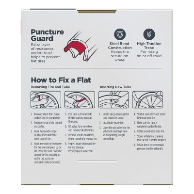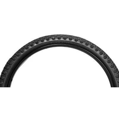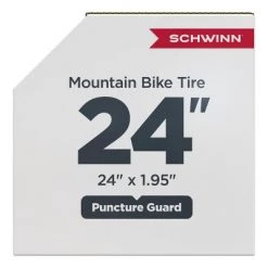 The Schwinn 24 x 1.95 Mountain Tire is great for off-road riding. It features wide, blocky knobs for traction on loose or rocky terrain. The outer knobs extend over the tire edge for sidewall protection. This tire fits internal rim widths of 19 to 29 mm and has a PSI range of 35 to 65. Enjoy the freedom of riding with Schwinn.