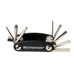 Every bike enthusiast will love to have this Schwinn 9-in-1 multi-purpose bike tool for a quick repair. It has a variety of screwdrivers in various sizes and shapes that will come in handy for a sudden repair or breakdown. This bike repair kit fits most standard size frames. Its made of metal and comes with a key.