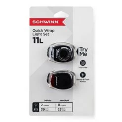 Whether you want to see or be seen this Schwinn 2 LED Light Combo in black will help keep you safe on your next bike ride. The set includes one white LED light in the front and one red LED light in the rear with both steady and flash settings will keep you visible. With quick wrap mounting straps, no tools needed to mount the Schwinn front and rear light set on your bike, which makes it easy to make sure your bike rides stay just as safe as they are fun!