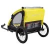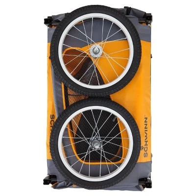 Don’t leave spot waiting sadly in the car, or even worse, at home in a kennel. Thanks to the new Rascal Pet Trailer from Schwinn, you can take your favorite furry companion with you wherever you go! 16-inch air-filled tires and the non-slip trailer liner provide a comfortable, smooth ride for your pet, and the liner is easily removable and washable after your ride. With a rear doggy-door for easy in-and-out access and a two-in-one canopy that doubles as a bug screen and weather shield, comfort is simply a bike ride away. And thanks to the interior leash with an adjustable length, you don’t have to worry about your pet leaping out at the first squirrel you pass. Going on a trip? Don’t leave Fido behind! The unique folding frame and quick-release wheels pack up neatly for convenient compact storage and transport. The Schwinn rascal pet trailer holds one pet up to 50 lbs. Enjoy the freedom of riding with Schwinn!