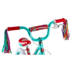 Teach your child to ride on a delightful bike they’ll love with the Schwinn Shea. The Shea features a SmartStart steel frame that’s perfect for kids learning to ride. SmartStart frames are designed with narrower, kid-specific proportions for easier pedaling and handling. Plus, the Shea can grow with your child. The training wheels provide stability as they learn to ride, while the saddle and slack seat tube angle allow for easy adjustment as your child grows. It also includes both a rear coaster brake for intuitive stopping, and front and rear hand brakes to ease the transition to a bigger, hand-brake-only bike. And for extra fun, the Shea features bright colors and handlebar streamers. Like all Schwinn bikes, the Shea comes with a limited lifetime warranty for as long as you own the bike. Teach your child to ride on a bike designed just for kids with the Schwinn Shea.