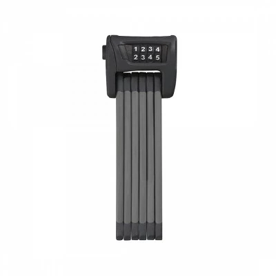 LOCK SECURIT LINK FOLDING BRONTO COMBO 90cm BK Securit Locks, made by Abus. Bars, links, case and supporting elements made from temper hardened steel for cut and torsion resistance. Silicone cover on lock body provides soft-touch coating to prevent damage to bicycle finish. Folding style allows for compact transportation. Convenient rattle-free carrying case mounts with velcro straps or to bottle cage mounts. ABUS designed combination cylinder resists pulling and hammering attacks. 2K Dials: two-component molded digits guarantee readability for the life of the lock. Individually settable combination.