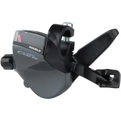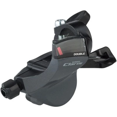 Shimano Rapidfire Plus left flatbar shift lever for road and fitness bikes. Compatible to 2 x 8 speed Claris R2000 components. The levers are also equipped with 2-Way Release for different riding styles or shifting (index finger or thumb) from various riding positions. The upper lever still performs the same function, but it swings both ways. Pull it with your finger or push it with your thumb – you choose. Clear display to quickly see what gear you are in. Item Specifications: , Shifter StyleTrigger, Double or TripleDouble,