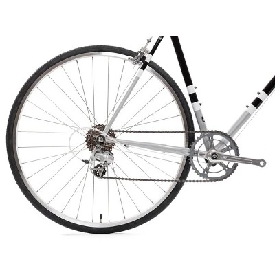 Introducing the State Bicycle Co. 4130 Road Bike. Built on the double butted 4130 Chromoly frames that the company was founded on, this stunning machine pays homage to classic road bikes with plenty of modern qualities. Distinct to the 4130 Road is a highly-responsive classic 8-speed down tube shifting. The bike sports a fully CNC machined crank with 44t chainring with an 11-28 cassette, giving a versatile range to any rider in the city. While keeping classic styling, up-to-date features like a 1 1/8″ threadless stem and light-weight wide rims capable of handling 32c clearance. State Bicycle Co. paid attention to every detail in our first geared-road bike offering, with special ornamentation on the brake levers, hubs, brake pad holders, saddle and more. The frame accommodates both front and rear racks. This bike is the perfect commuter for anyone who loves the clean, timeless aesthetic offered by State Bicycle Co. but needs the gears to help with a hilly commute