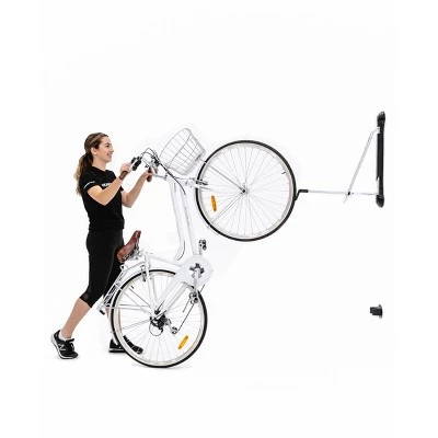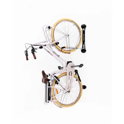 The Steadyrack Fender Bike Rack is one of the only bike racks designed specifically to accommodate bikes with fenders and mud guards. The Steadyrack Fender Rack can be mounted to virtually any wall and its patented design allows it to swivel almost 160 degrees to either side. It minimizes space without compromising safety and there is no heavy lifting required. This is a truly revolutionary way to store a bike with fenders without taking up much space.