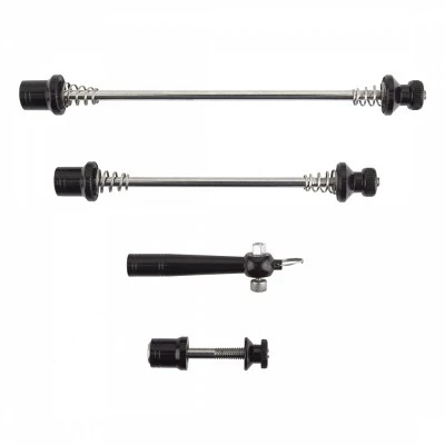 HUB SKEWER SUNLT LOCKING FT/RR & SP 5-sided key locking skewer set. Chromoly axles. 6061 anodized alloy. Includes seat and F+R wheel skewers. 95g (set).
